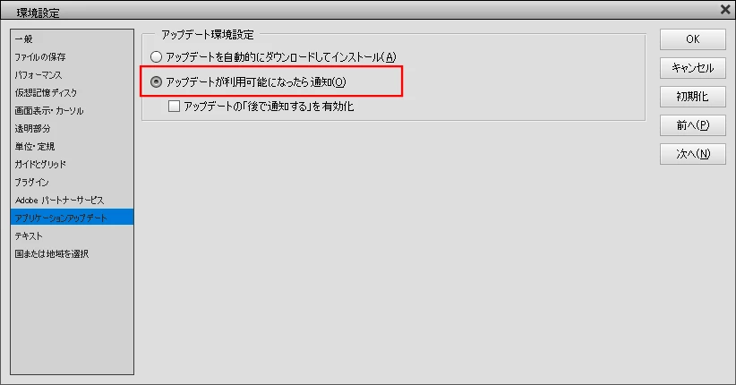 Photoshop Elementsの場合、メニューの「編集」→「環境設定」→「アプリケーションアップデート」を選択し、開いた「環境設定」ウィンドウの「アップデート環境設定」項で「アップデートが利用可能になったら通知」を選択しておくと、アップデートが利用可能になった段階でPhotoshop Elements画面にメッセージが表示されるのではと思います。