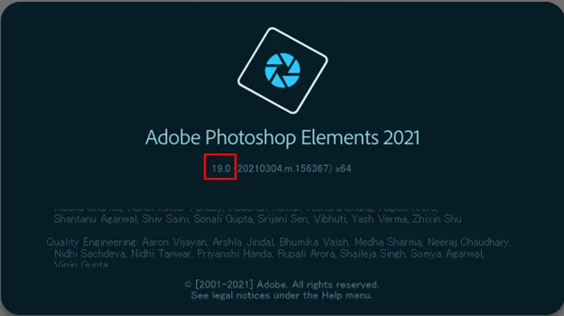 Photoshop Elements 2021の最新バージョンは「v19.0」ですので、2021になってからはまだアップデートがないということです。