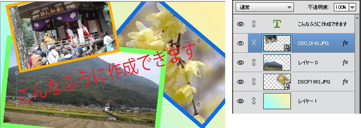 で、次のように行えば、面倒くさいですが何とかコラージュが作成できると思います(下図)。