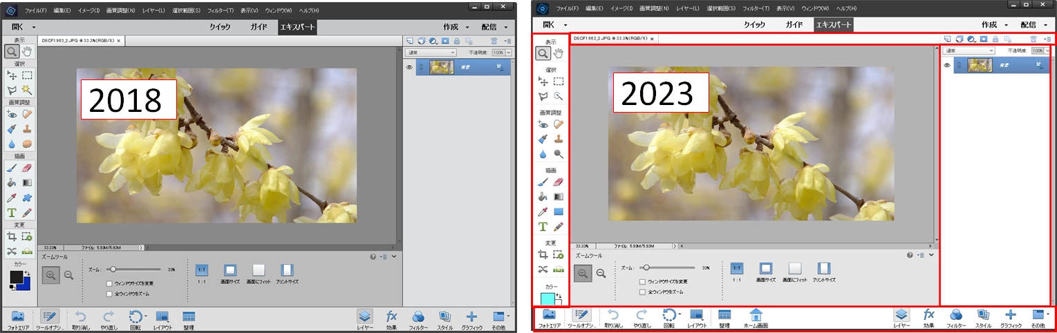 Photoshop Elements 2023 のアプリケーションデザインについて