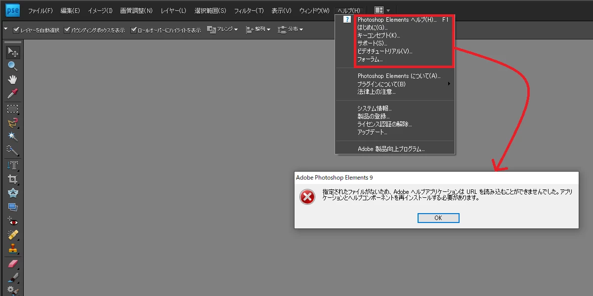 Photoshop Elements 9の再インストールで課題が発生