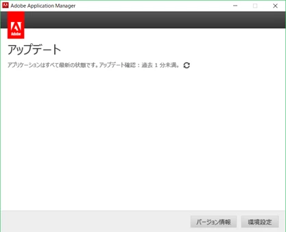 従来は「アップデート」をクリックして開く「Adobe Application Maneger」(下図)でアップデート有無を確認する必要がありましたが、2019からは「更新」の文字色を見るだけでアップデート有無が分かるように改善されたのではないでしょうか。