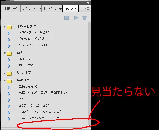 MMizuki5CA4ParticipantForum|Forum|5 years agoJanuary 19, 2021QuestionPhotoshopelement2021でバッチ処理ができないForum|Forum|5 years agoJanuary 19, 20211 reply453 viewsPhotoshopelement2021でバッチ処理を使おうとしてアクションウィンドウを出したのですが、「新規アクション」を作成するためのボタン(紙のマーク)が出て来なかったためできませんでした。どなたか解決方法をご存じでしたら、教えていただけますでしょうか。FAQ問題またはエラー機能改善リクエストアクションとスクリプティング作成するWindows