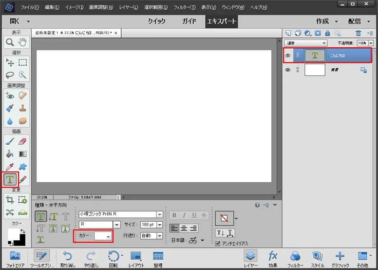 PhotoShopElements2018 Mac OS10.13.2で使ってます。文字入力ができません。右側のレイヤーには入力した文字は見えますが