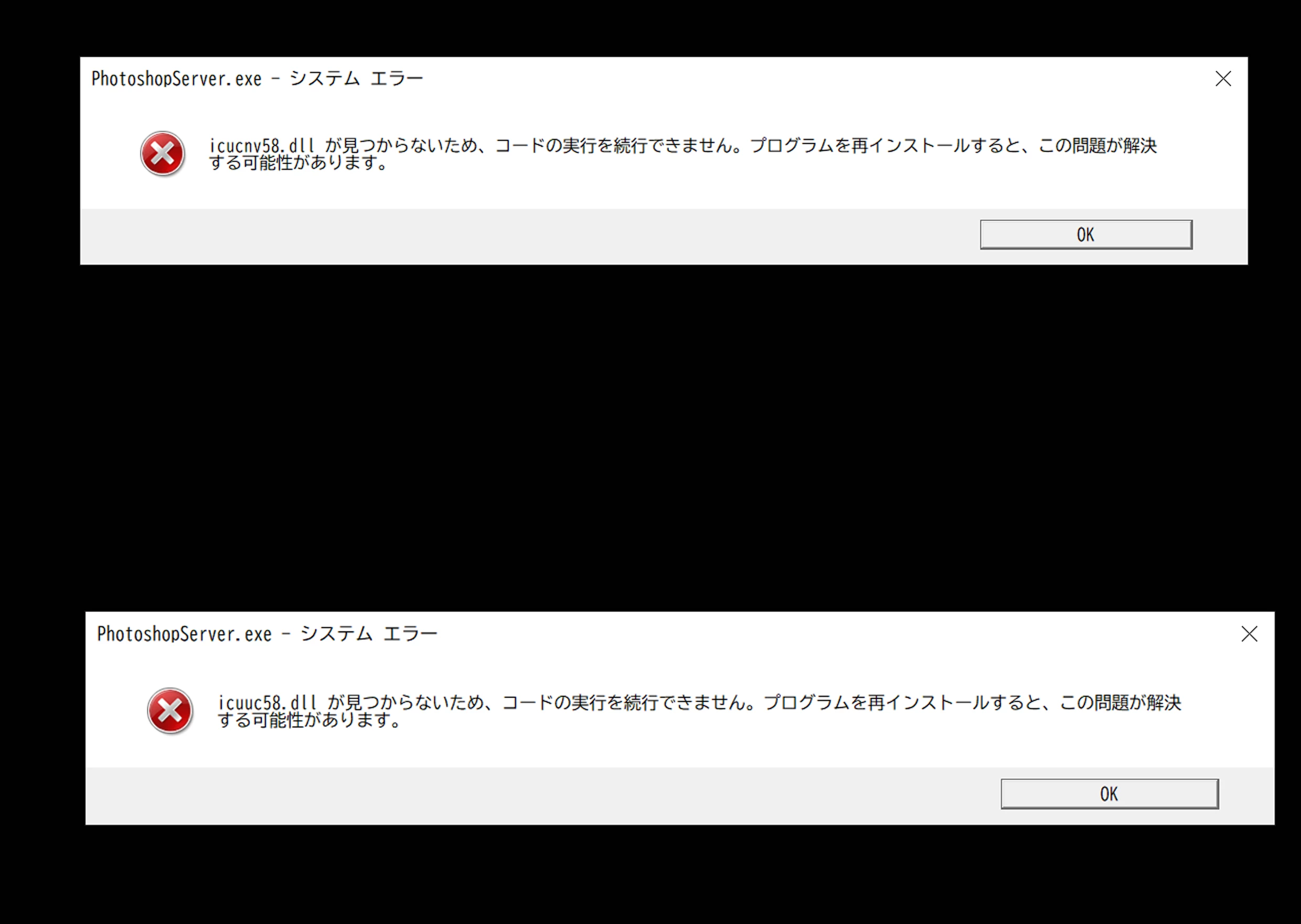 - PhotoshopServer. exe - システム エラー
