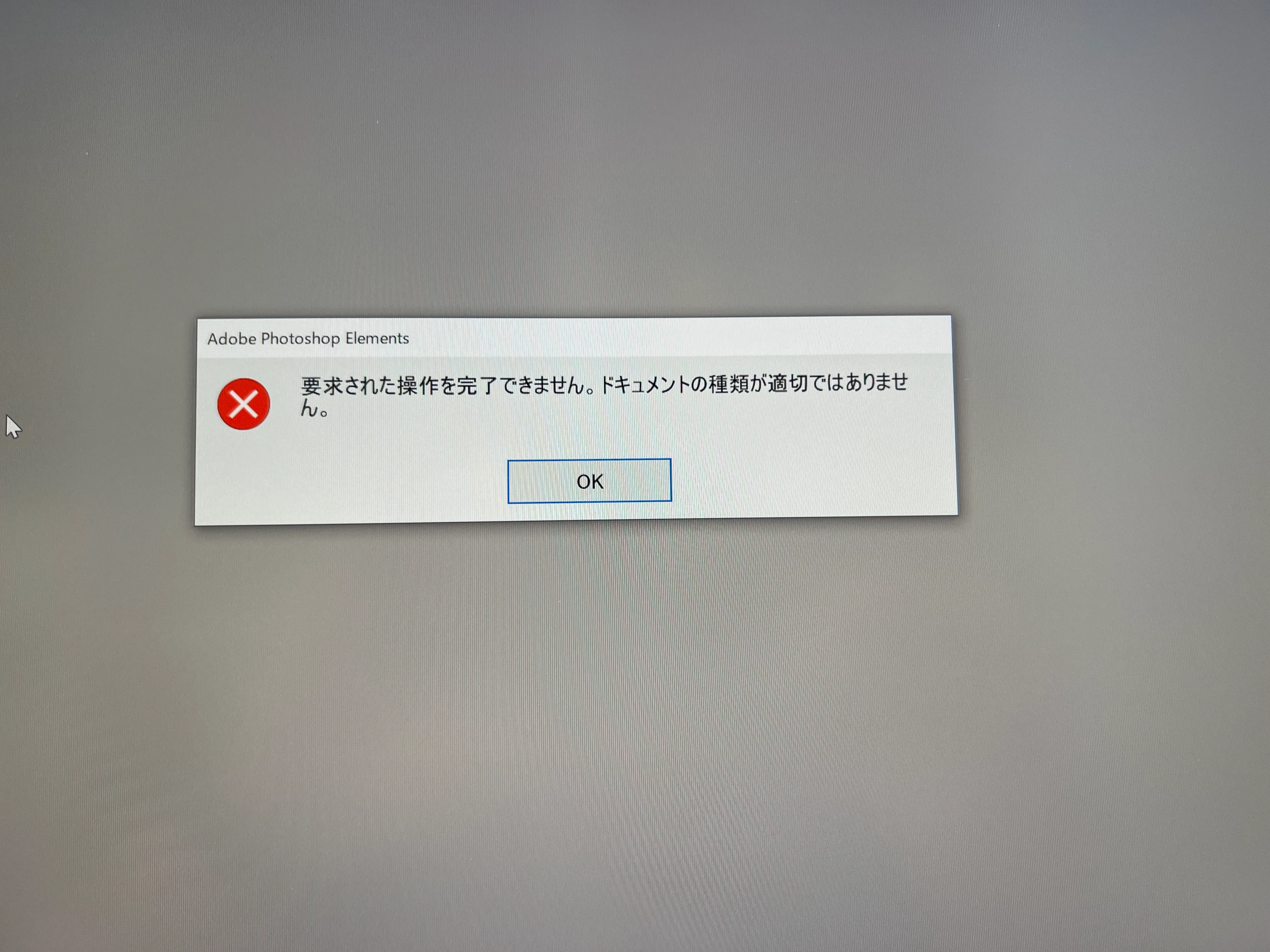 1部のTIFFファイルを開こうとすると、添付した画像のような「要求された操作をかんりょできません。ドキュメントの種類がてきせつではありません。」というエラーを吐きます。