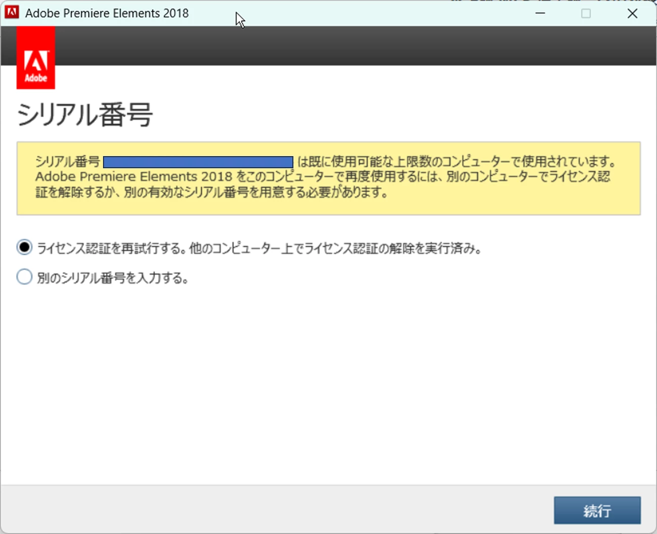 Win8.1で adobe premier elements12 を利用していて、なんかログインするダイアログがでで動かなくなり、体験版にしたら、画像に体験版により作成の表示がでるようになりました。かなり古いのでシリアルナンバーがわからないため、adobe premiere のサブスクリプションには、入ったのですが、体験版の表示が消えません。念のため、バージョンアップもしましたが。体験版終了まで消えないのでしょうか?ログインは、何度もやってます。