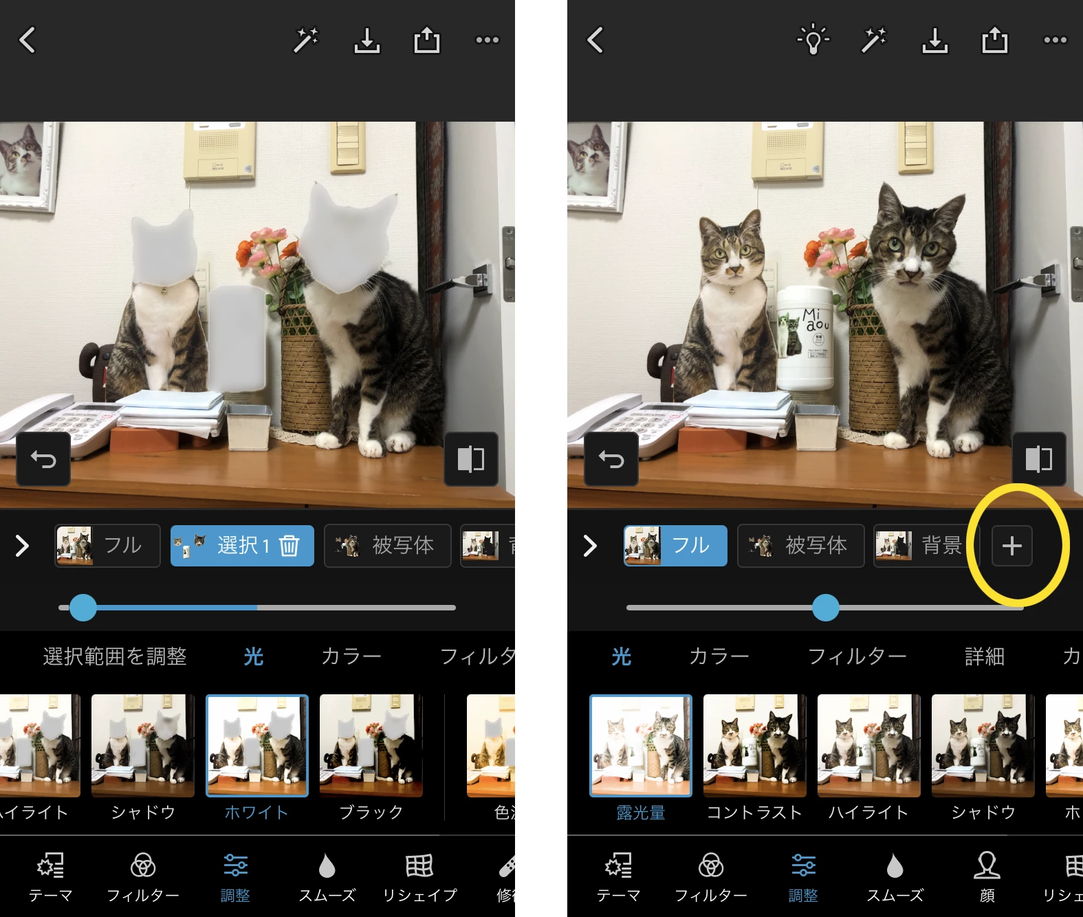 スマホ版のPhotoshopやLightroomだと複数人とか部分的にブラシでなぞって顔などにモザイクをかかる処理ってできたりしますか?