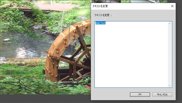 黄色の枠内へグラフィックをドラッグ&ドロップすると、青色の枠に変わり、「テキストを変更」ウィンドウが開きます。テキストを変更し「OK」をクリックします。