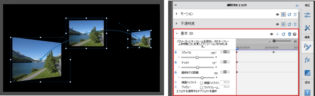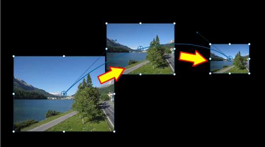①写真を左から右(右から左へ)に移動したい(移動時は手前から奥へ半円を描きながらの左から右に移動希望です)