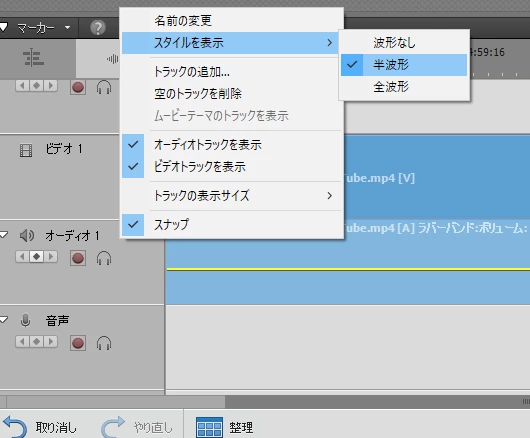 オーディオトラックのスタイル表示「半波形」選択をして、細かな動画シーンを編集しておりました。