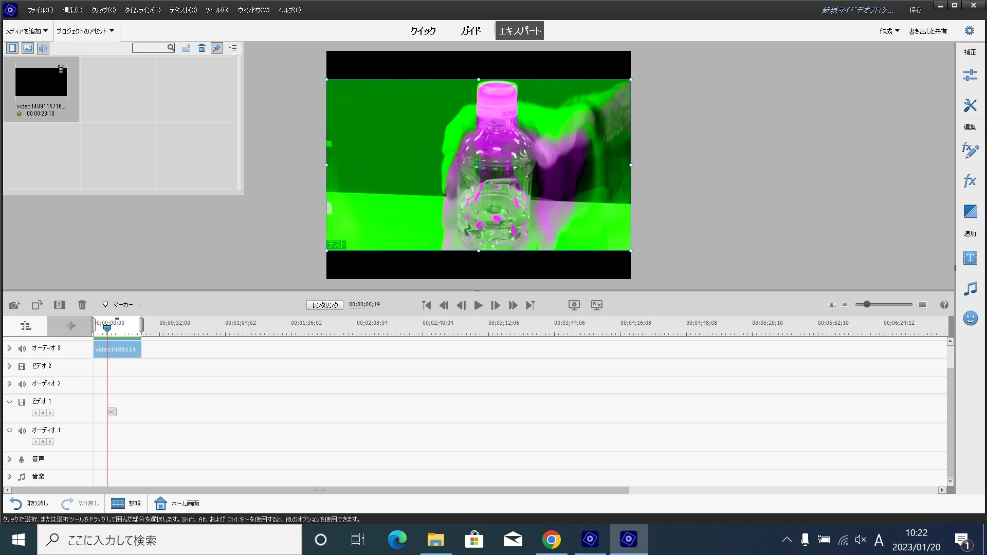 「レンダリング、再生および書き出しにハードウェアアクセラレーション(Intel HD Graphics 2000以降)を使用」のチェックを外したところ、ピンクや緑の色が消え、