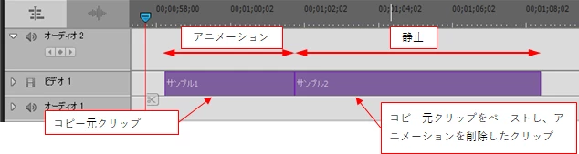 コピーペーストしたクリップの編集内容がコピー元に反映されてしまうら