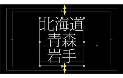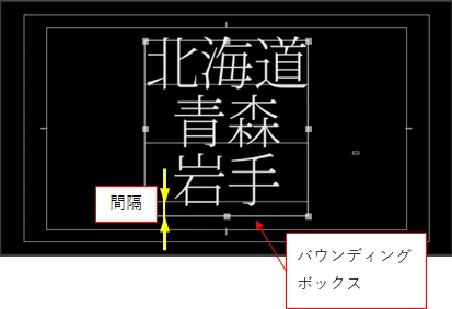 縦方向の中央揃いはバウンディングボックスに対して行われますので、行の基準線とバウンディングボックスの線に間隔があるため、文字は上方に若干ずれたようになります。