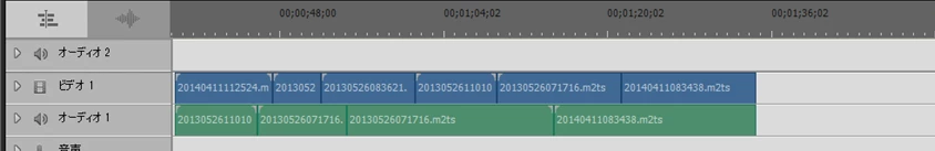 元のクリップの配置(ビデオとオーディオのリンクは解除されている)
