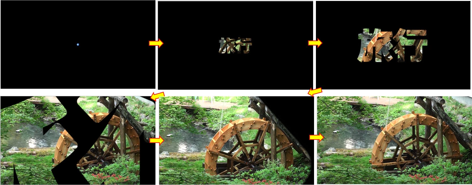 ・文字の最初の色は白色、それが徐々に透明になりつつその部分に背景映像が見えてくる。