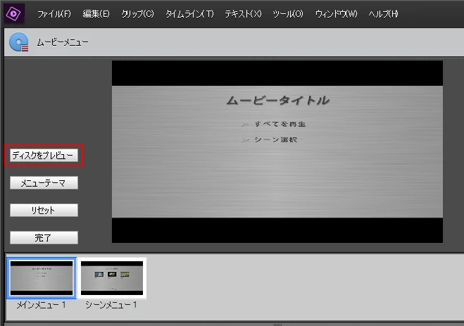 ②「ディスクをプレビュー」ポタン(下図赤枠部)を押して、正常に動作するか確認してみてください。