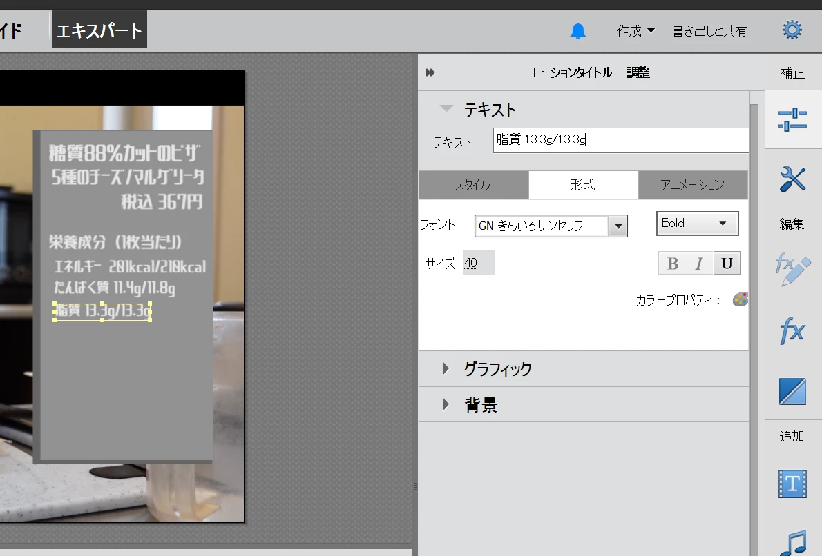 商品の移動方法とモーションタイトルの追加の文字の移動方法を、後で説明します(今,オリンピックのテレビ中継に夢中です(笑))。