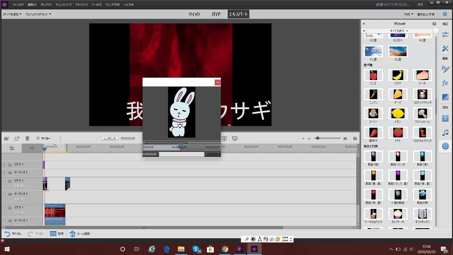 タイトルの際にイラストをのせようと思い、ツールの右下グラフィックからウサギを選択し動画にのっけました。しかしこちらのウサギの背景を白に近い色にしたいと思い編集しようと思い、名前をつけて保存をしようと思いましたが、名前の変更しかなく、保存ができませんでした。