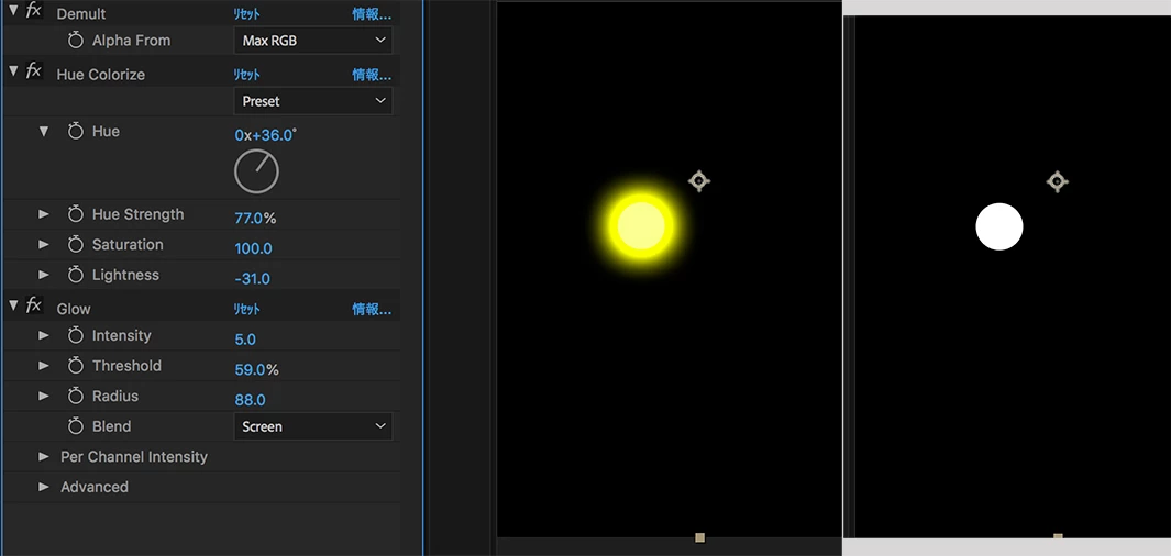 蛍の光はタイトラーで作成しても良いし、Mukaidaさんご提示の方法でもOKです。Mukaidaさんの方法の方が綺麗な光を作成できます。