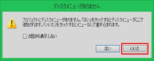 ⑤「ディスクメニューがありません」ウィンドウが表示されたら、「いいえ」をクリックします。