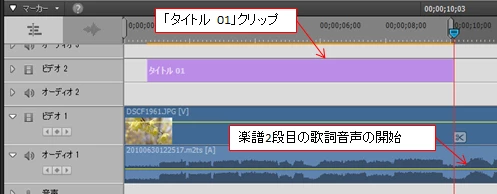 続いて、デュレーションを楽譜2段目の歌詞音声開始時間より10フレーム前迄伸張します。
