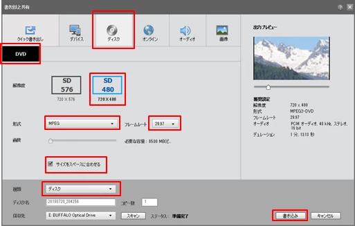 買ってきたDVDに入れようとすると52秒の動画でも入りません。