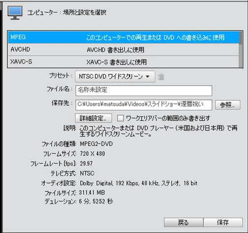 最悪、MP4で書き出し、MP4データをモバイルパソコンにコピーし、