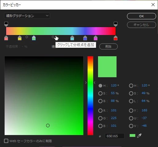 線形グラデーションのカラー分岐点
