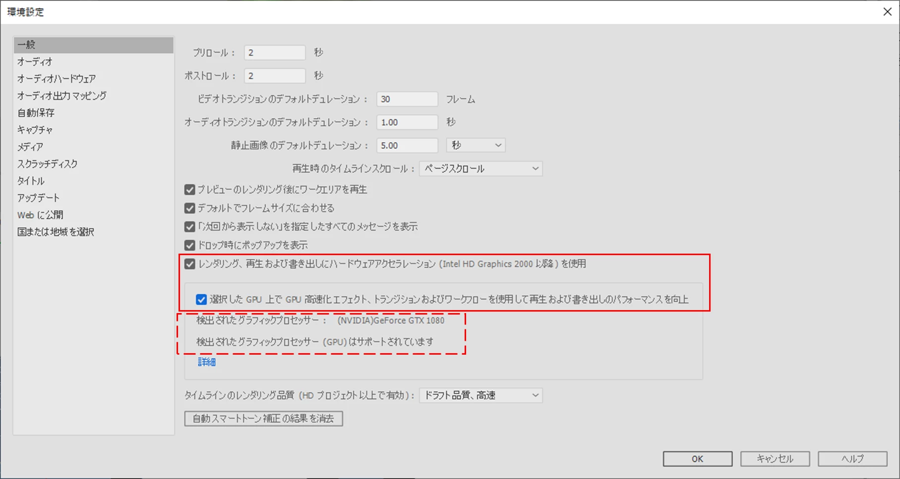 環境設定→一般からGPUをみたのですが、相変わらず先のスクショのGPUと同じですた。