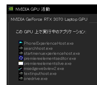 ただ、nVIDIAの実行中のアプリケーションにはエレメンツと思われる
