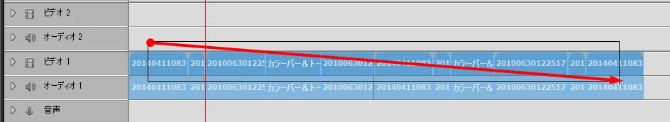 連続している複数クリップを選択する場合がドラッグが便利です。