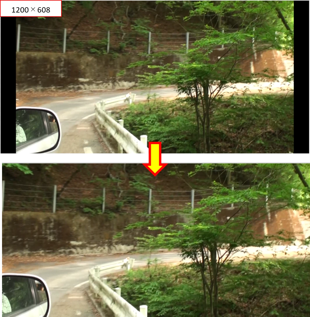 試してみています。モーションの縦横比の固定を解除し、編集したい動画は細長くカットできますが、余白部分が残ってしまうため、貼り付けする時に綺麗に動画を並べることができません。