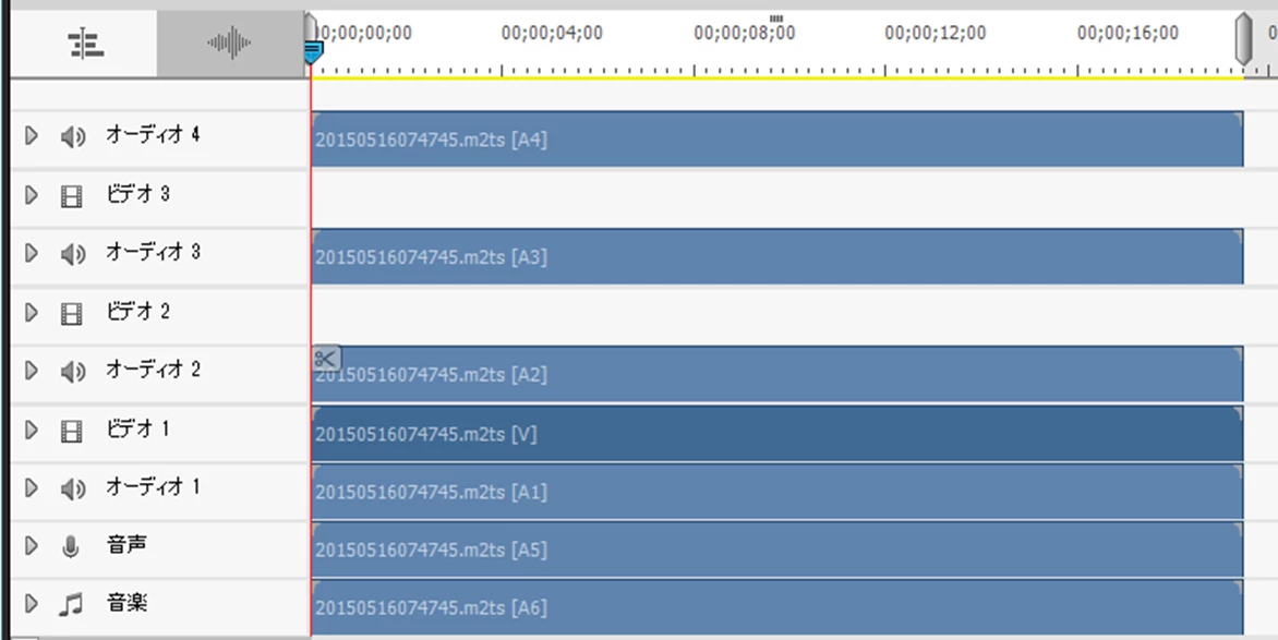 Adobe Premiere Elements2024を使用していますが、ビデオカメラでの撮影が5.1chの場合、ビデオを挿入するとオーディオが複数行挿入されるというということはわかったのですが、私はインストール後、試行錯誤しているうちに上記のように5..1chにもかかわらずビデオ1とオーディオ1のみの挿入ができたみたいなのですが・・・。挿入すると常にこのような状態にする方法はあるのでしょうか?自分でもどのようにやったのかがわからず困っております。オーディオとビデオのリンク解除を行ったわけではありません。