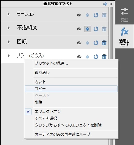 ②そのエフェクトを右クリック>コピー。