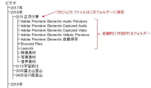 そして、Cドライブの「ビデオ」フォルダーに、プロジェクトごとのフォルダーを作成して保存すると管理が容易になります。下図はその一例です。年月日をキーにしてフォルダーを作成してあります。
