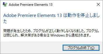 Adobe Premiere Elements 13 は動作を停止しました