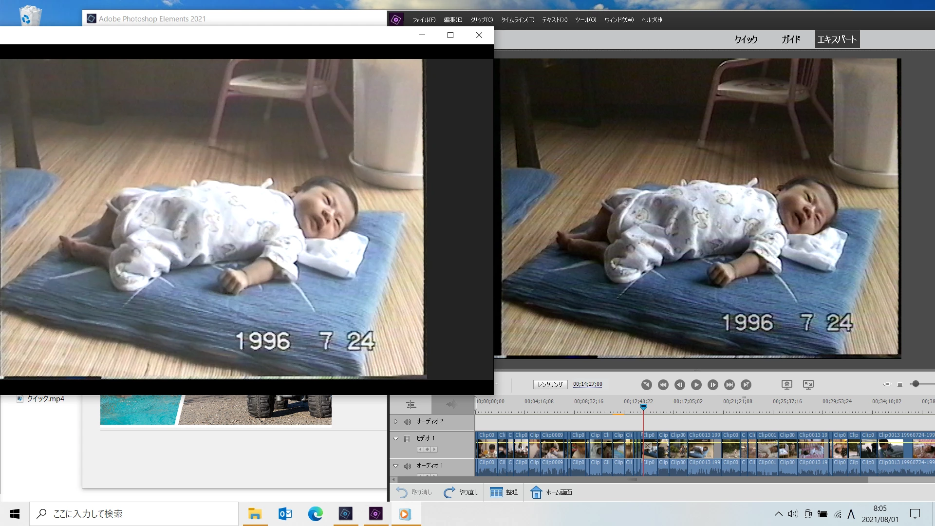 >mp4をPremiere Elements2021に読み込み再生すると、AVIと同じくらい。白っぽくないです。