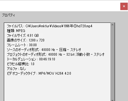 HI8,miniDVのが画像(AVIに変換済)をmp4で書出しすると