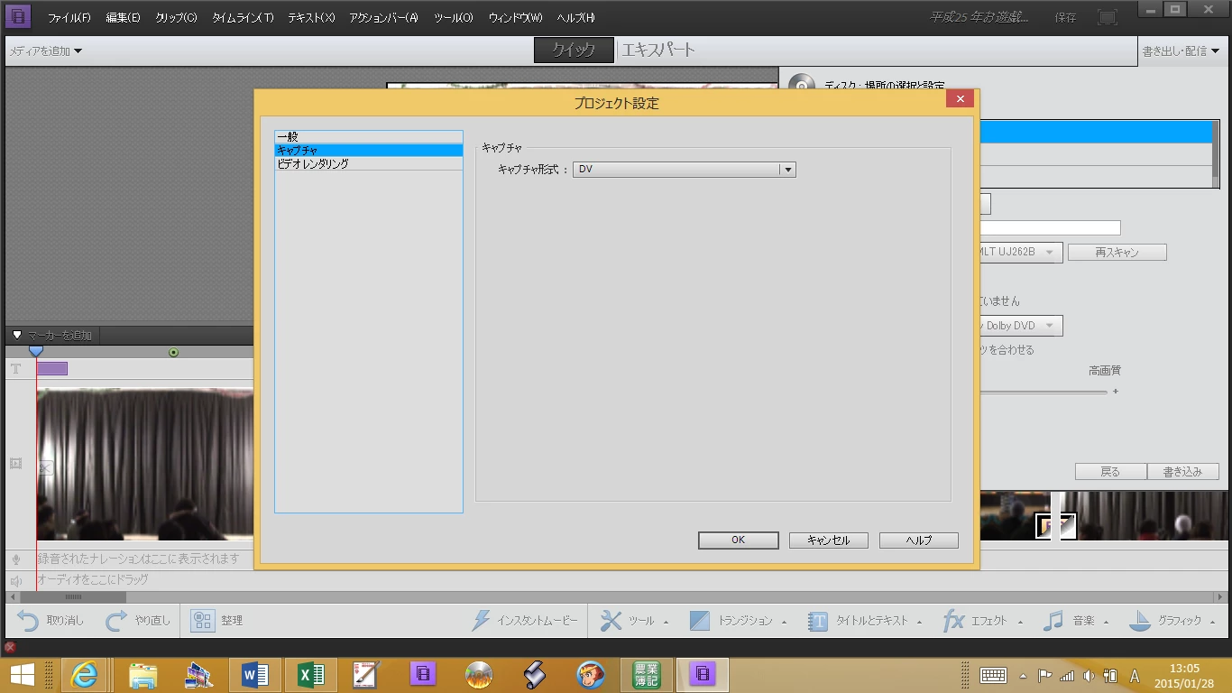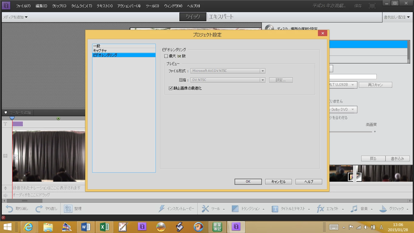 ②Premiere Elementsのプロジェクト設定内容と書き出し設定内容