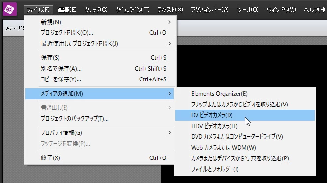 Premiere Elements 12迄のようです。「DVビデオカメラ」と「HDVビデオカメラ」の記載があります(下図)。