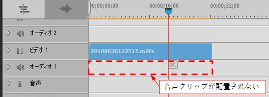 > タイムラインのオーディオトラックに音声クリップが配置されないということでしょうか。