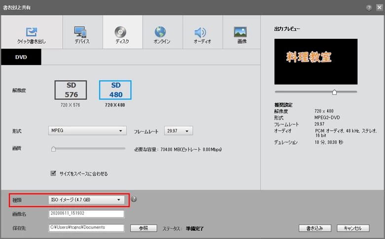 (2)HDDに取り込みしてあるファイルをPremiere Elementsに読み込めれば、isoファイルに書き出すことは出来ます(下図赤枠部)。