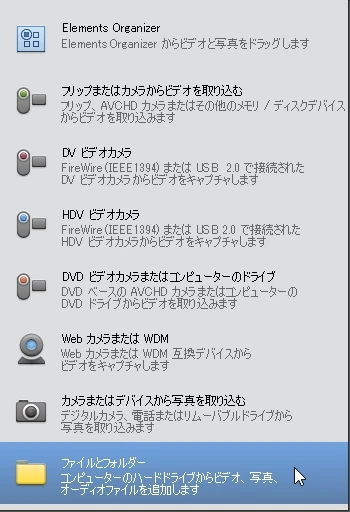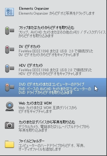 Premiere Elements 11 です。メディアを追加で、DVDディスクから動画を追加しています。