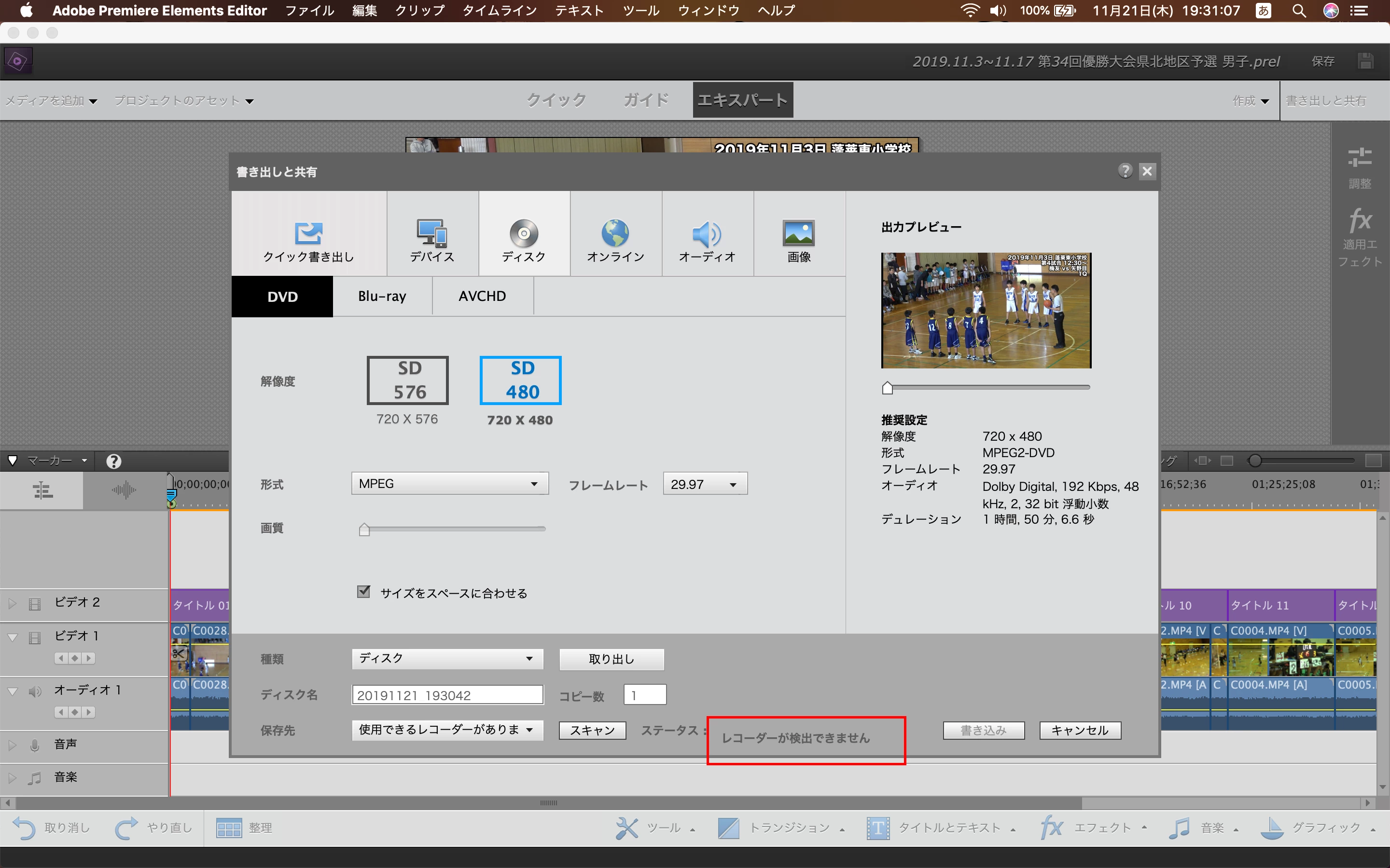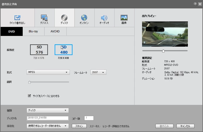 これまで普通にDVDに書き込みをしてきたのですが、突然添付画像のように「レコーダーが検出できません」という表示になり、スキャンされず書き込み作業が出来なくなりました。