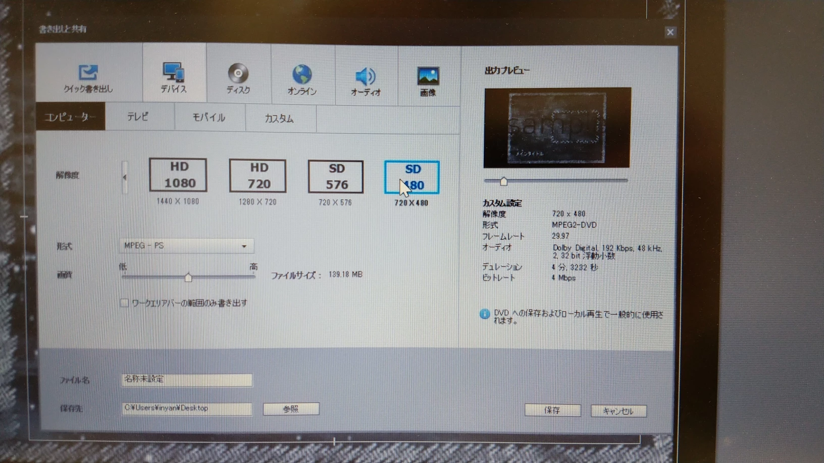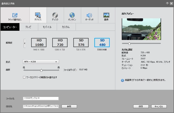 Premiere Elements 14 プレビューと保存後の相違