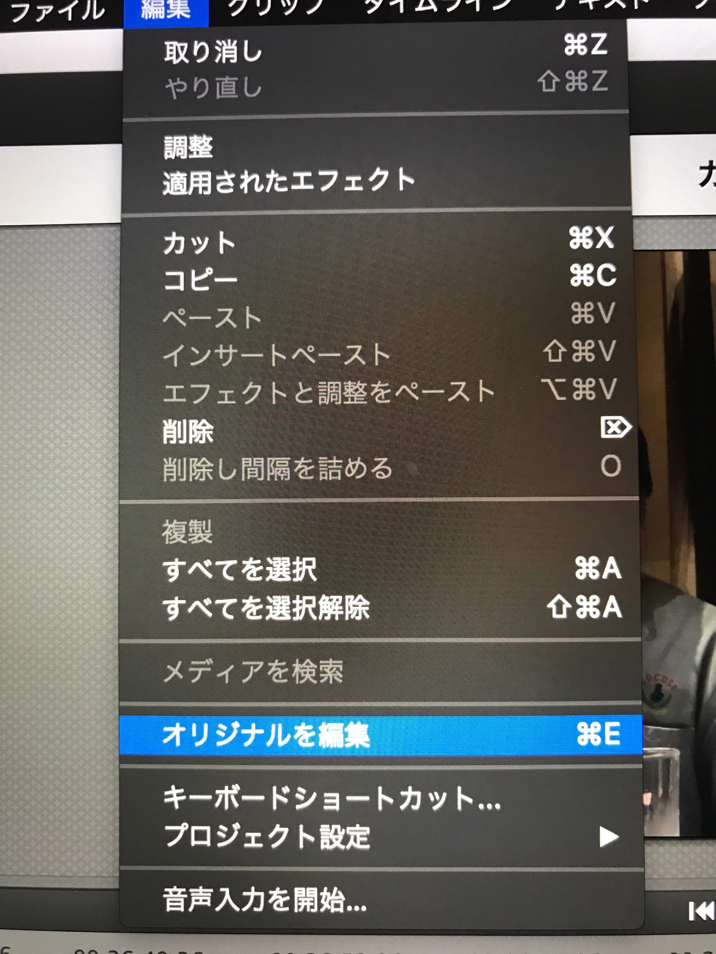 追記:ちなみに編集タブを開いて「O』を押すと、なぜか「オリジナルを編集」が対応しています。