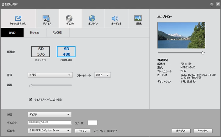 Premiere Elements 15 ブルーレイディスク等への書き出しができない