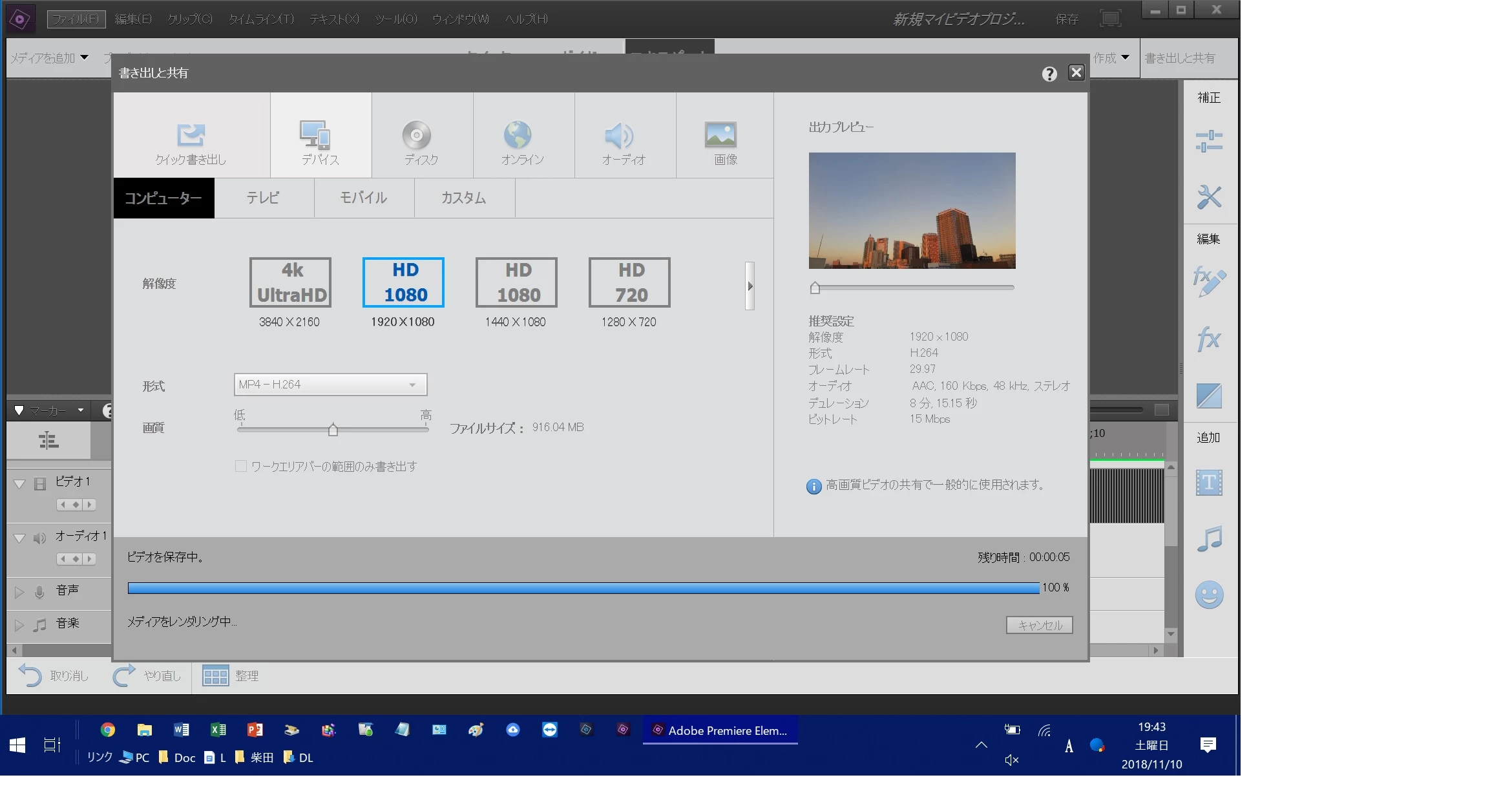 Premiere Elements 16 で、動画を書き出し中に、残り5秒で メディアをレンダリング中に停止してしまいます。