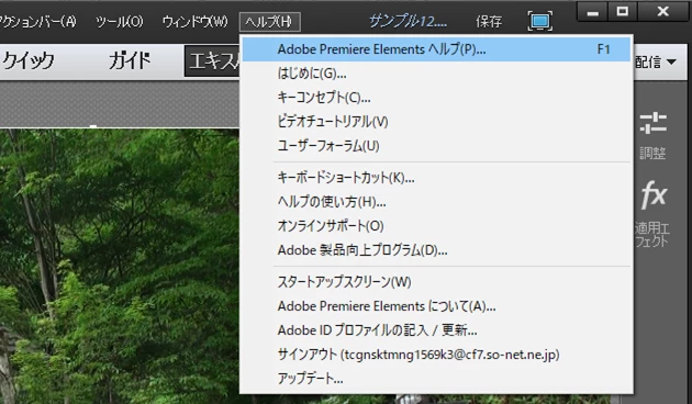 下図のようなヘルプのメニューが表示されないということでしょうか。(下図はPremiere Elements 12の場合です。10は持ち合わせがありません。)